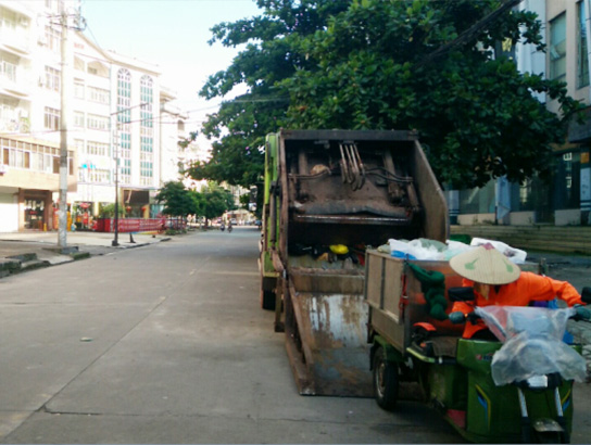 針對東興市國門城市的特點,公司采用機械作業(yè)與人工作業(yè)相結(jié)合的模式。人工作業(yè)方面,城區(qū)每天早上8點鐘前,環(huán)衛(wèi)工人完成大掃,輪班保潔,直到晚上11點鐘。機械作業(yè)方面,公司采用高壓清洗車對東興市城西區(qū)域路段進行清洗作業(yè),采用小掃路車對市區(qū)小街巷進行清洗作業(yè),全天候人工與電動三輪車巡回保潔,管理人員用電瓶車進行巡檢督查。垃圾清運則采用壓縮式收集車巡回收集城區(qū)各路段垃圾,采用5臺勾臂車對城西各區(qū)域100多個垃圾箱中垃圾進行轉(zhuǎn)運,垃圾壓縮車對全城的垃圾桶中垃圾進行循環(huán)收集,保證全城垃圾不落地。新型模式下的環(huán)衛(wèi)作業(yè)有效地提升了東興市國門城市形象及環(huán)衛(wèi)作業(yè)管理水平,受到業(yè)主單位及主管單位好評。