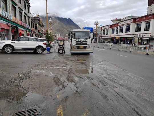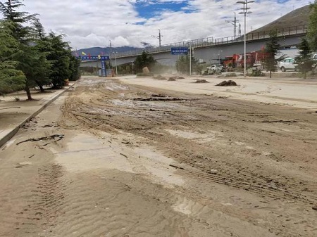 直至6月28日午時,國策環(huán)保山南分公司累計出動環(huán)衛(wèi)工人100余人次、裝載機(jī)10余車次、灑水車20余車次、路面清掃車20余車次,已清理泥土沙石總量約為20噸,市內(nèi)主要干道及泥石流發(fā)生路段已全面清理完成。